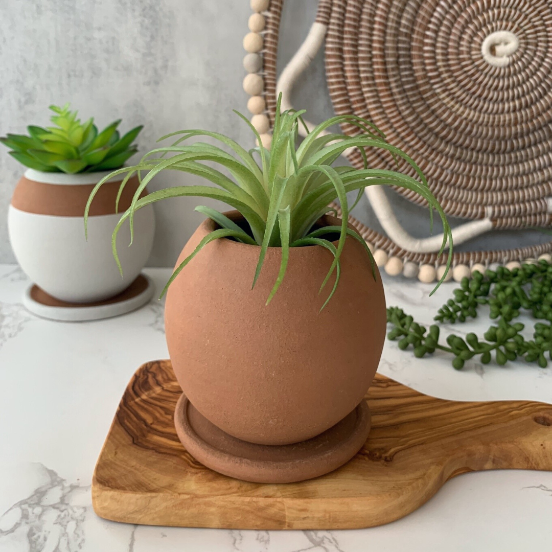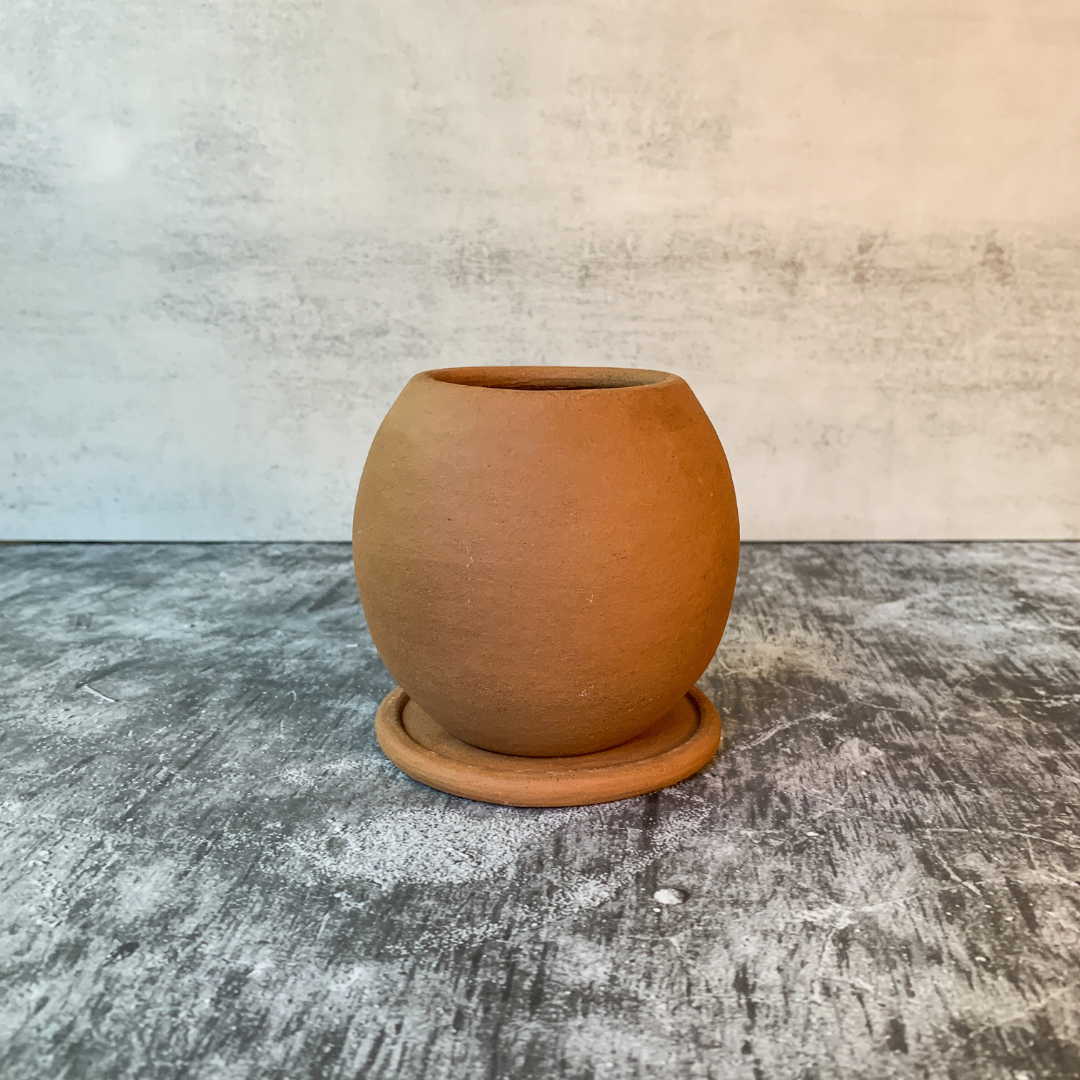 "Be Round" Small ceramic planter w/drainage plate - Terracotta
