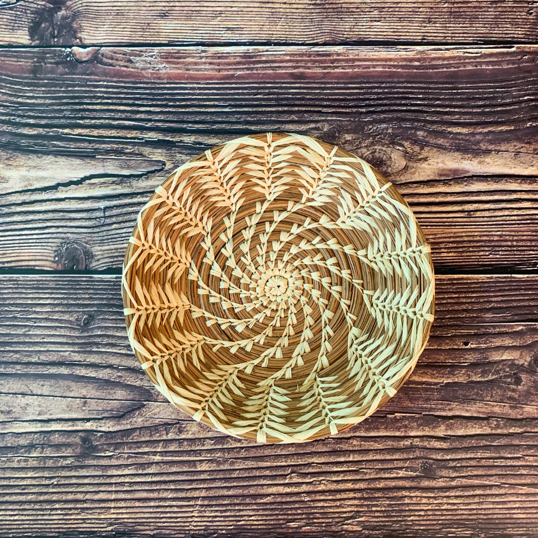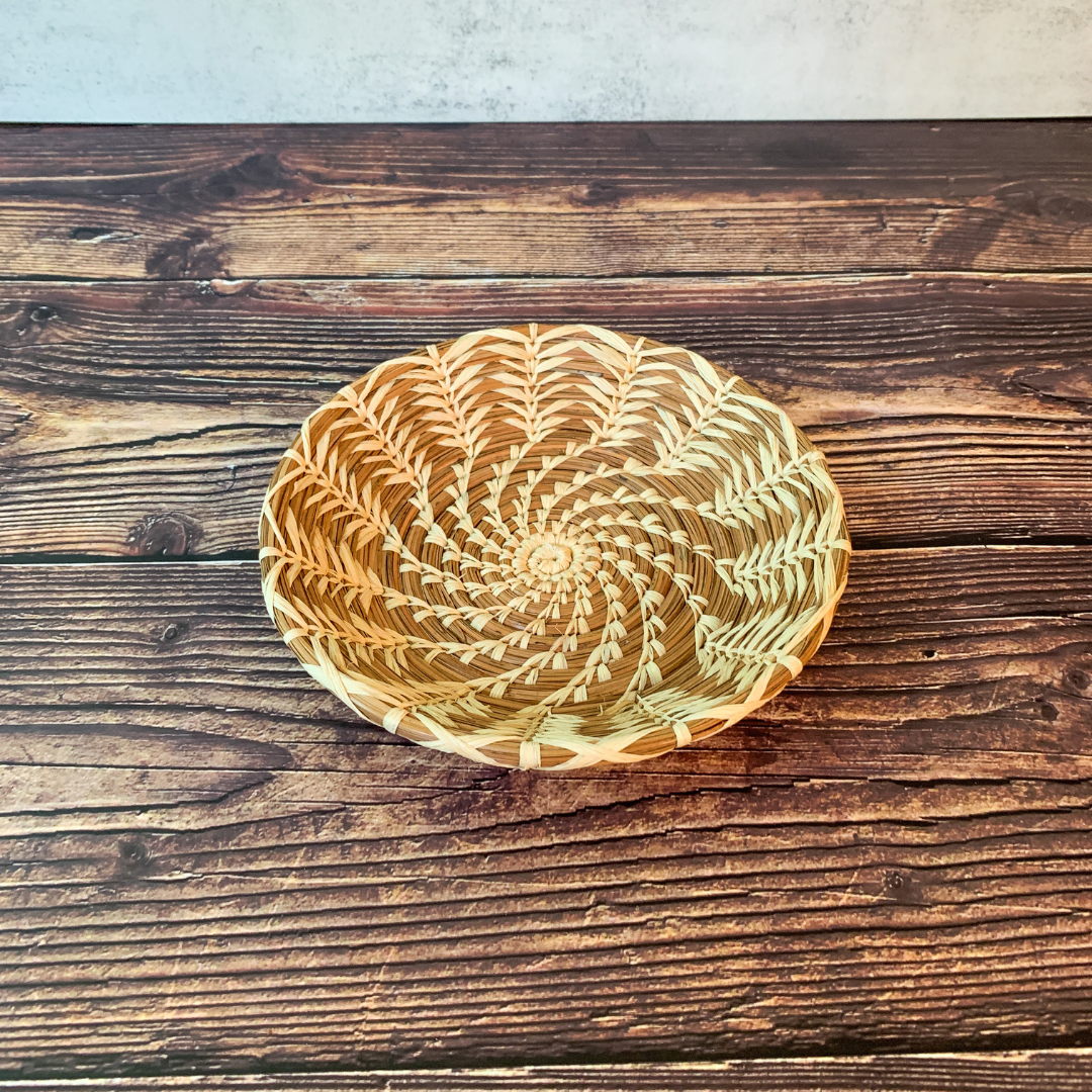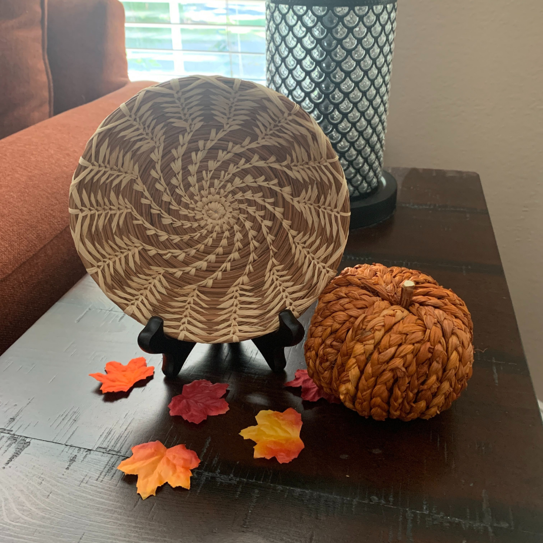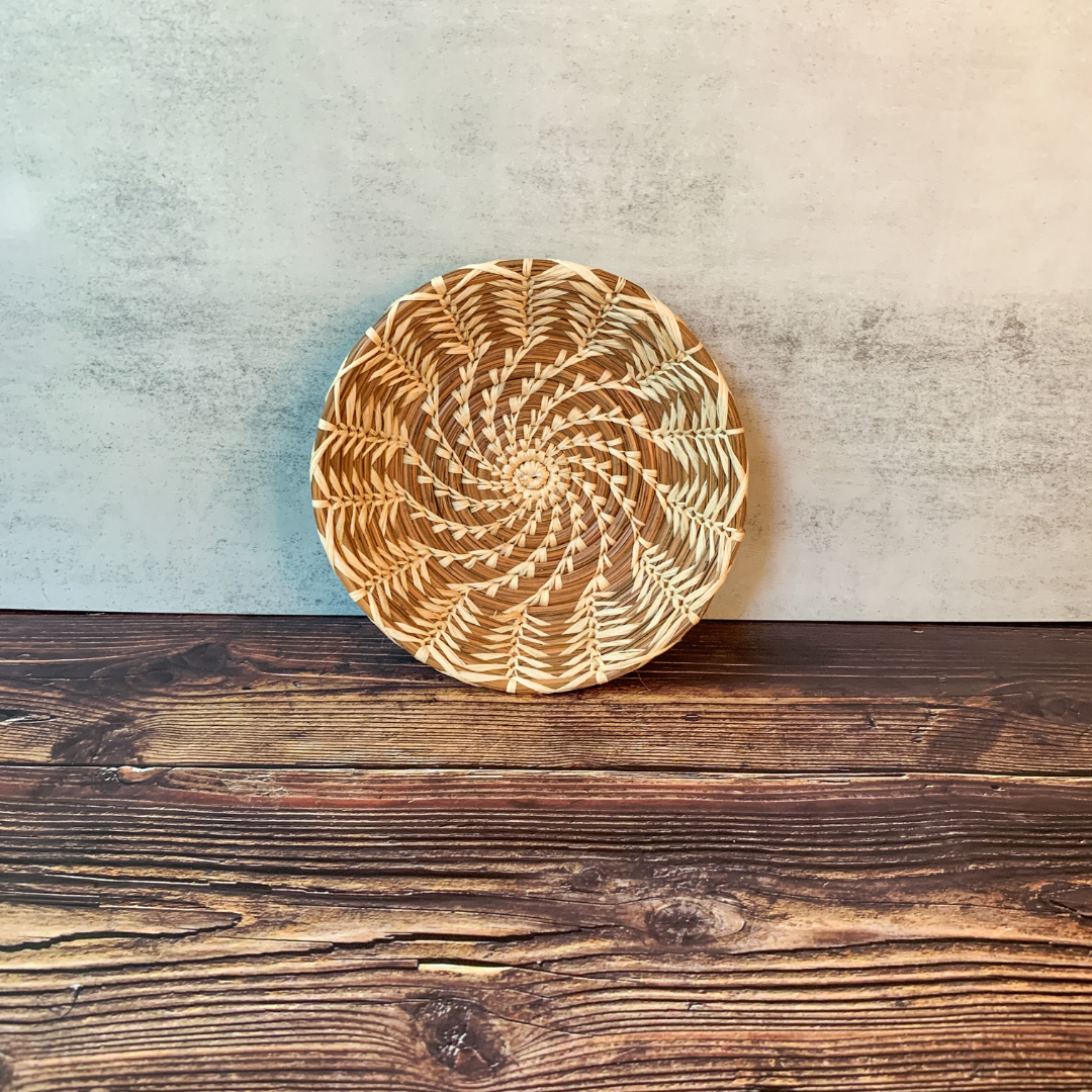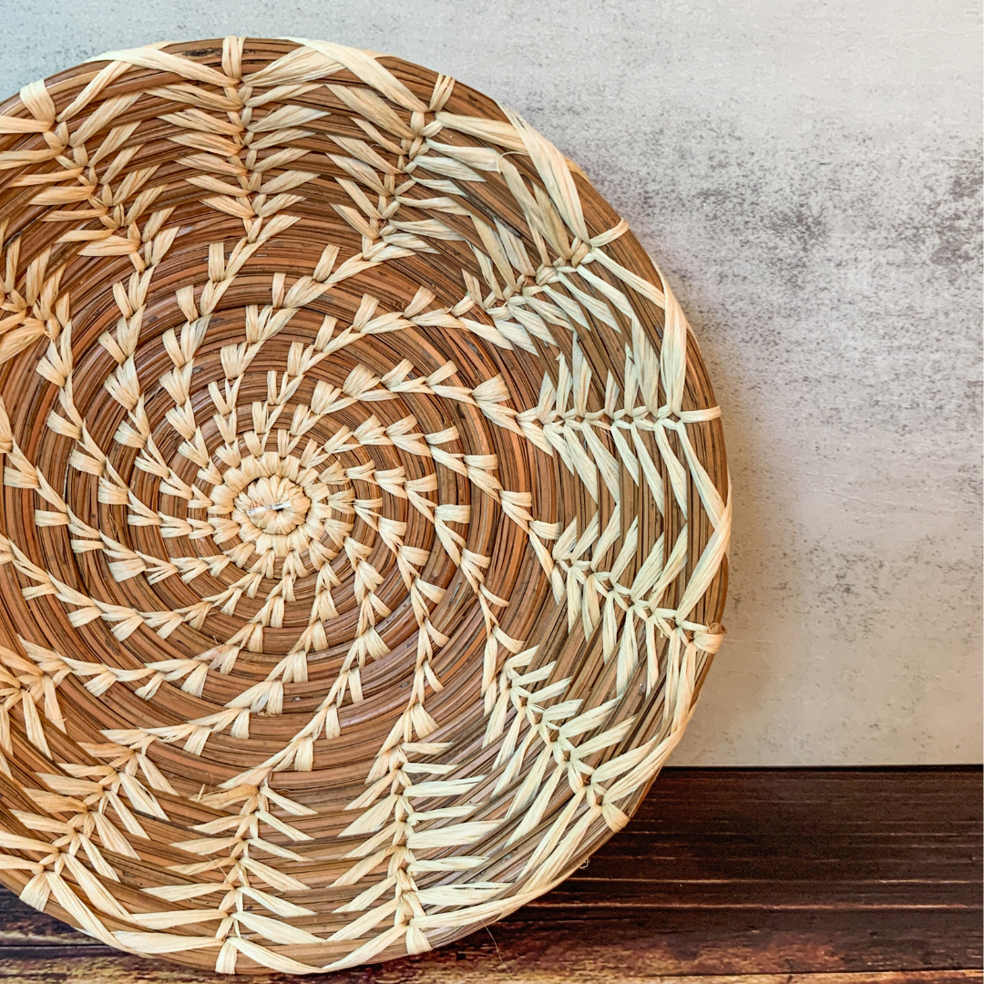 We happen to think she is a perfect addition to a basket wall gallery. The center spiral design that radiates to gently sloping sides is perfection.