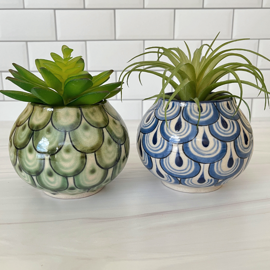 Beautiful artisan Ceramic Guatemalan Planters - now available in gorgeous Blue or Green!