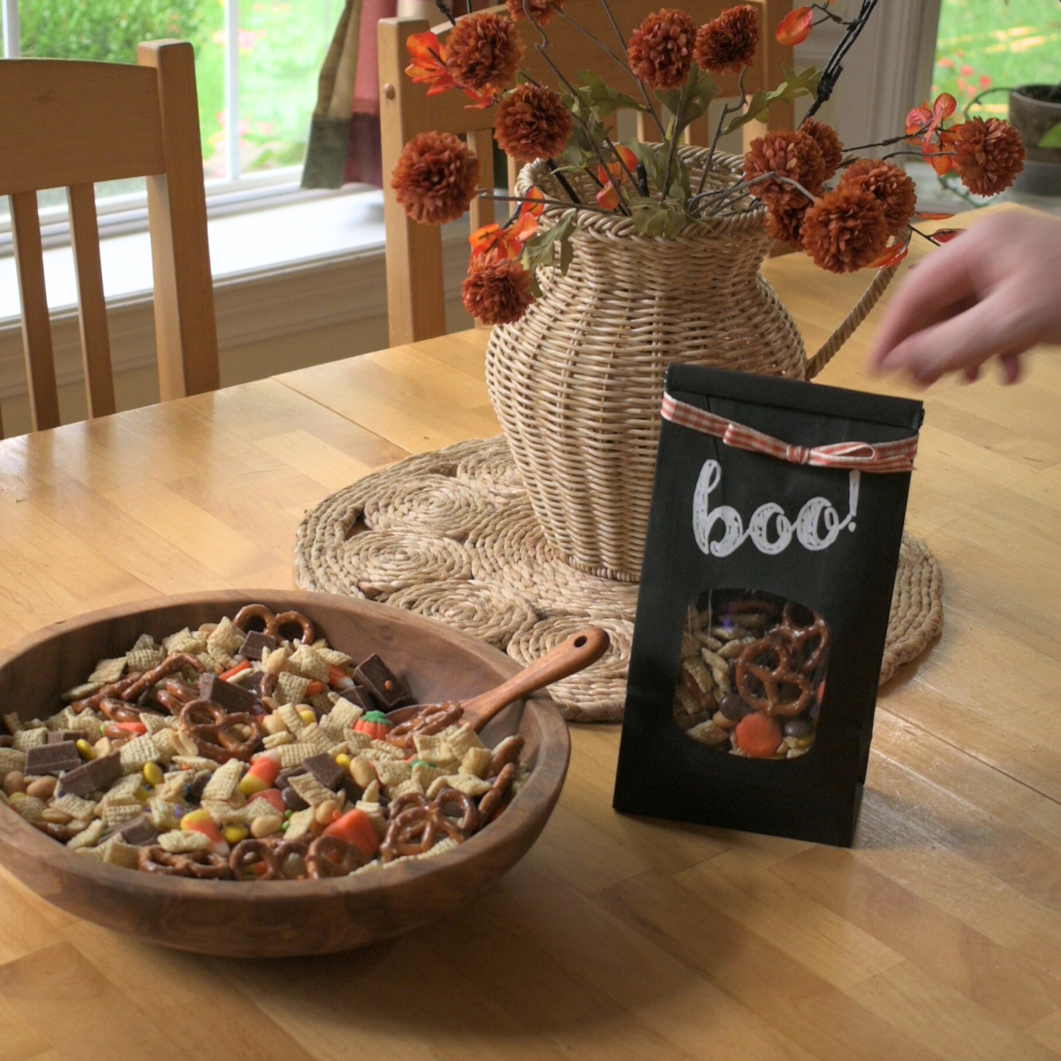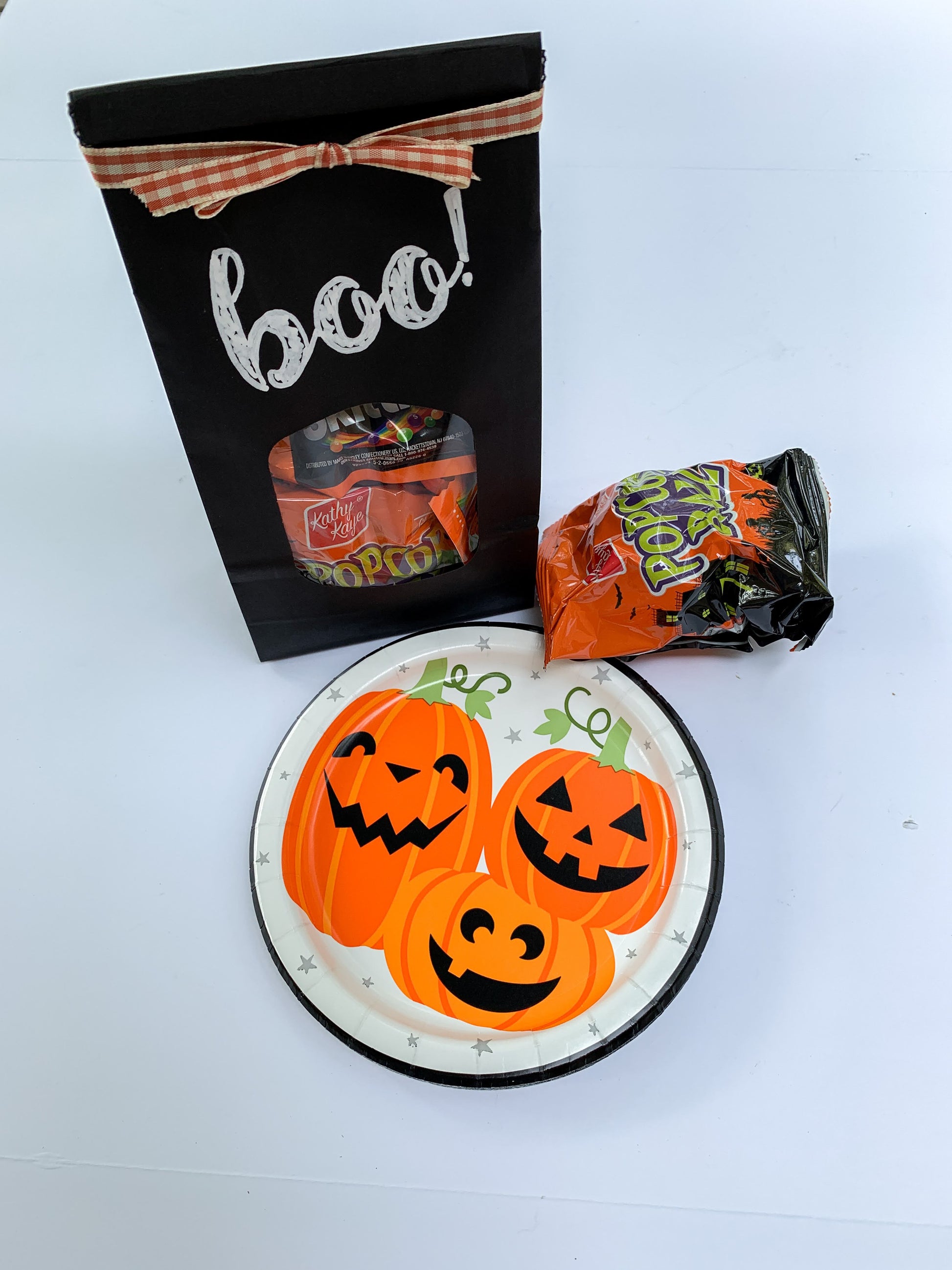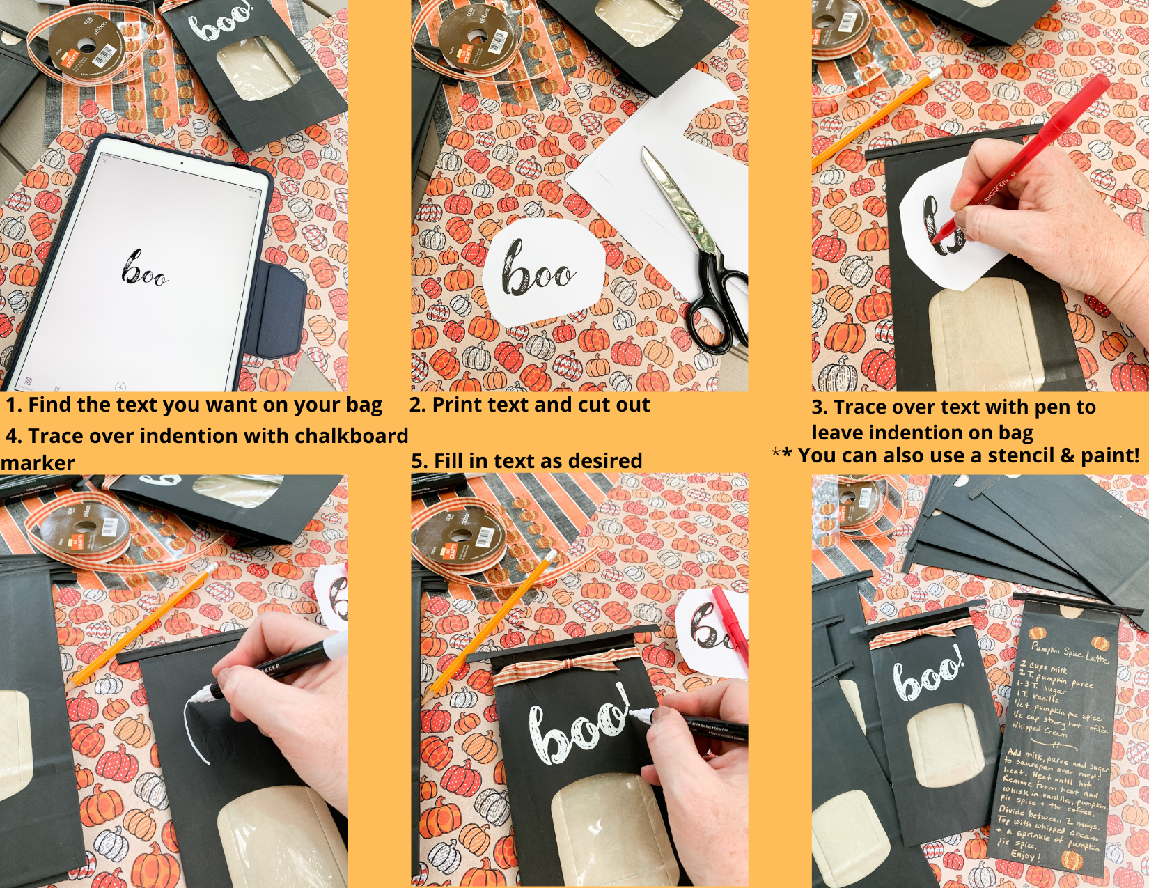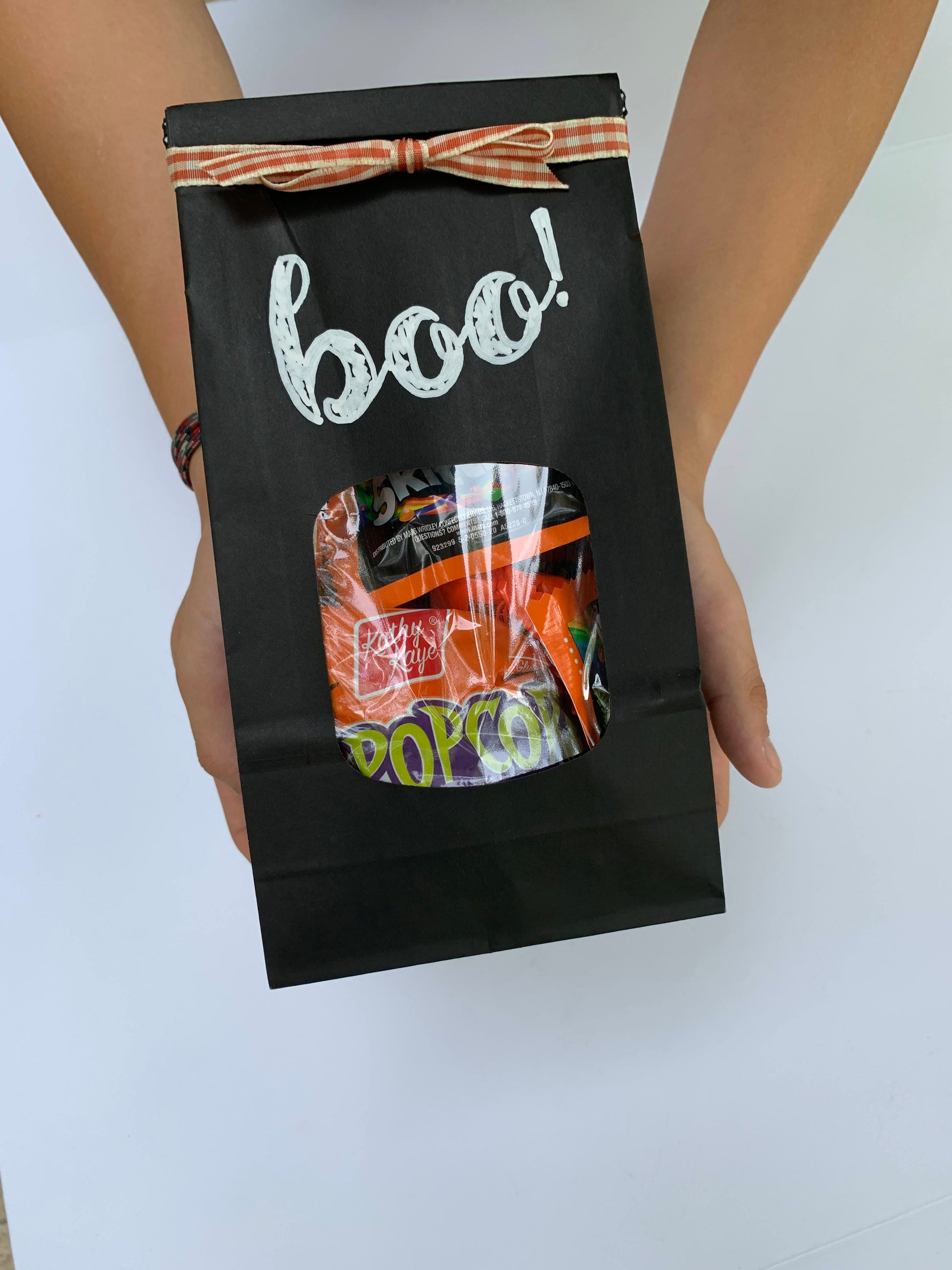 For the ultimate treat bag, decorate each bag to your liking and add your own personal message with chalk ink markers. (check out our easy to follow instructions on how we added " boo" to our bag)
