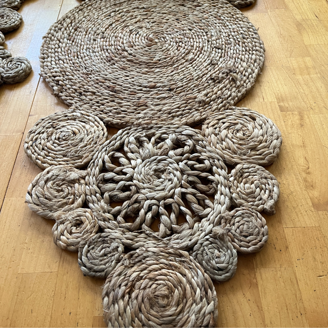 Dimension: Approx. 1'4" x 6'8". 100% Jute.
