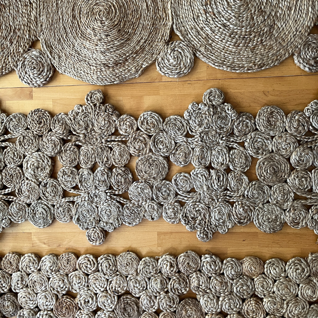 The large interconnected woven circles, framed by smaller ones, create a stunningly beautiful and appealing focal point.