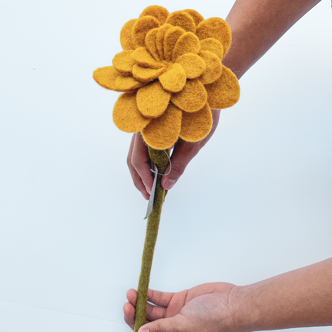 Felted Wool Zinnias - 13" tall x 5" wide (approx) / Bendable wire stem