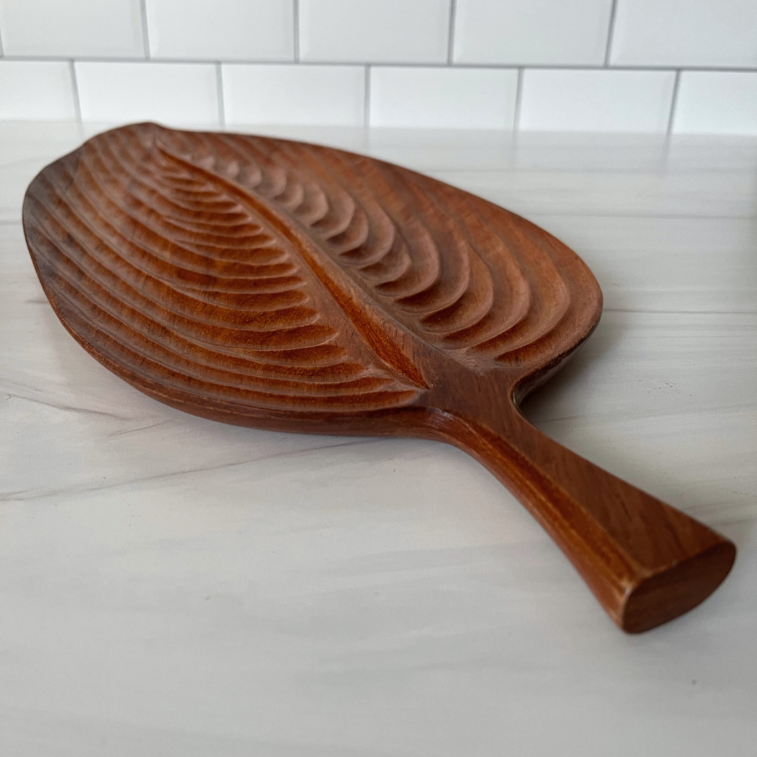 The beautiful carving of a leaf is perfect for Fall entertaining, and can also be used as functional decor year round.