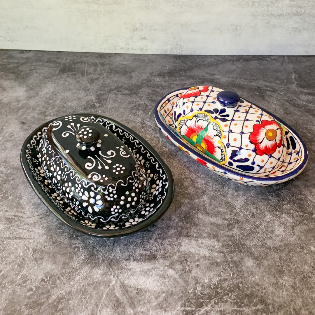 Keep fresh spreadable butter at your fingertips in these beautiful handmade Encantada pottery butter dishes. So gorgeous and functional and they will look amazing on your countertop!
