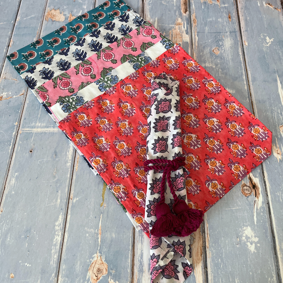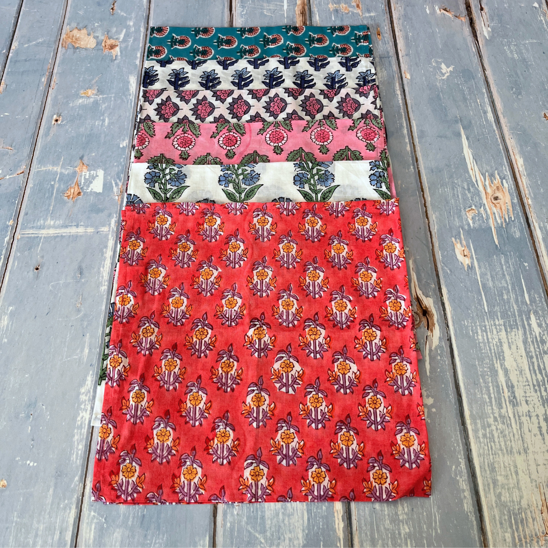 This Jaipur Block Print Napkin set is made with soft 100% cotton material that is block printed by artisans in Rajasthan, India using hand carved wooden blocks in classic Jaipur designs.