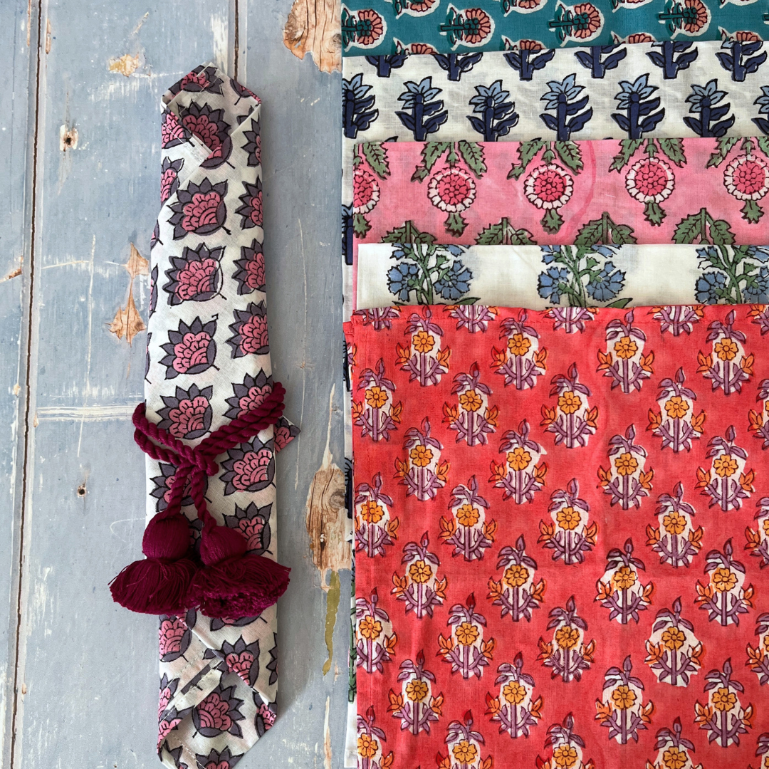 Great skill and precision is required for the artist to create these fine hand block prints, and the natural variations that occur with hand block printed textiles adds to the authentic beauty of each piece.