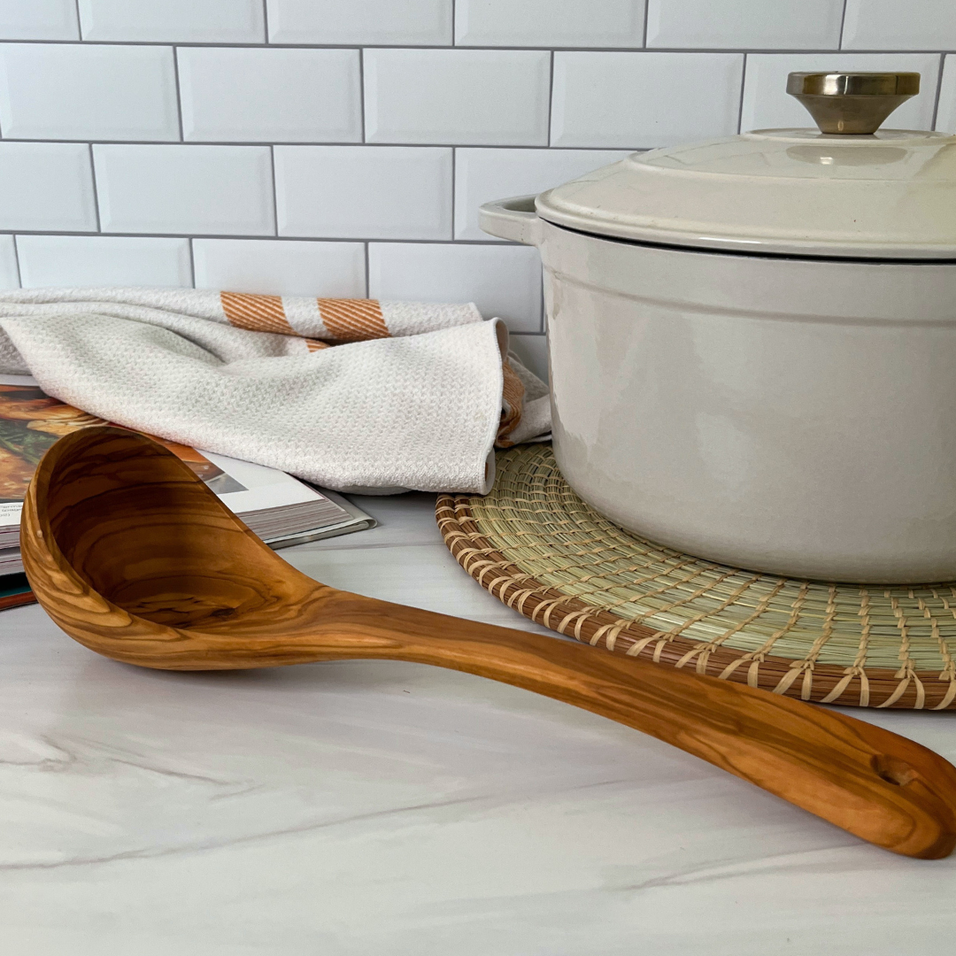 Each ladle is unique, with natural grain patterns that add character to your kitchen tools.