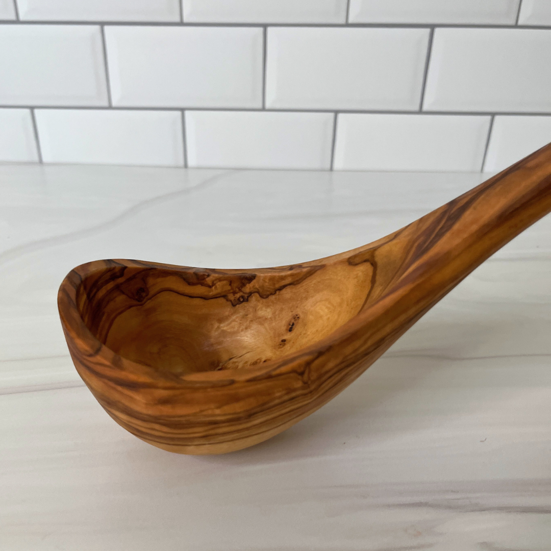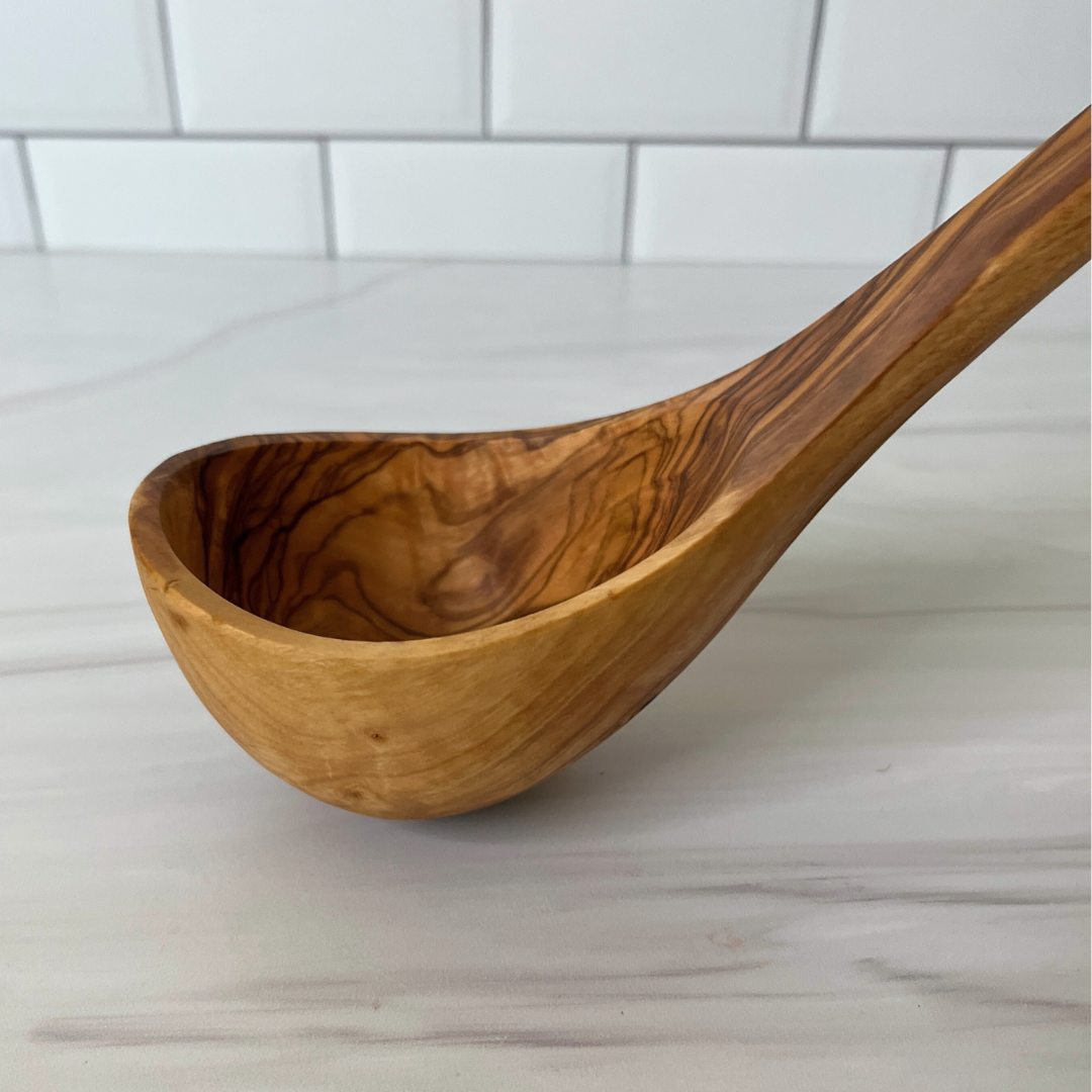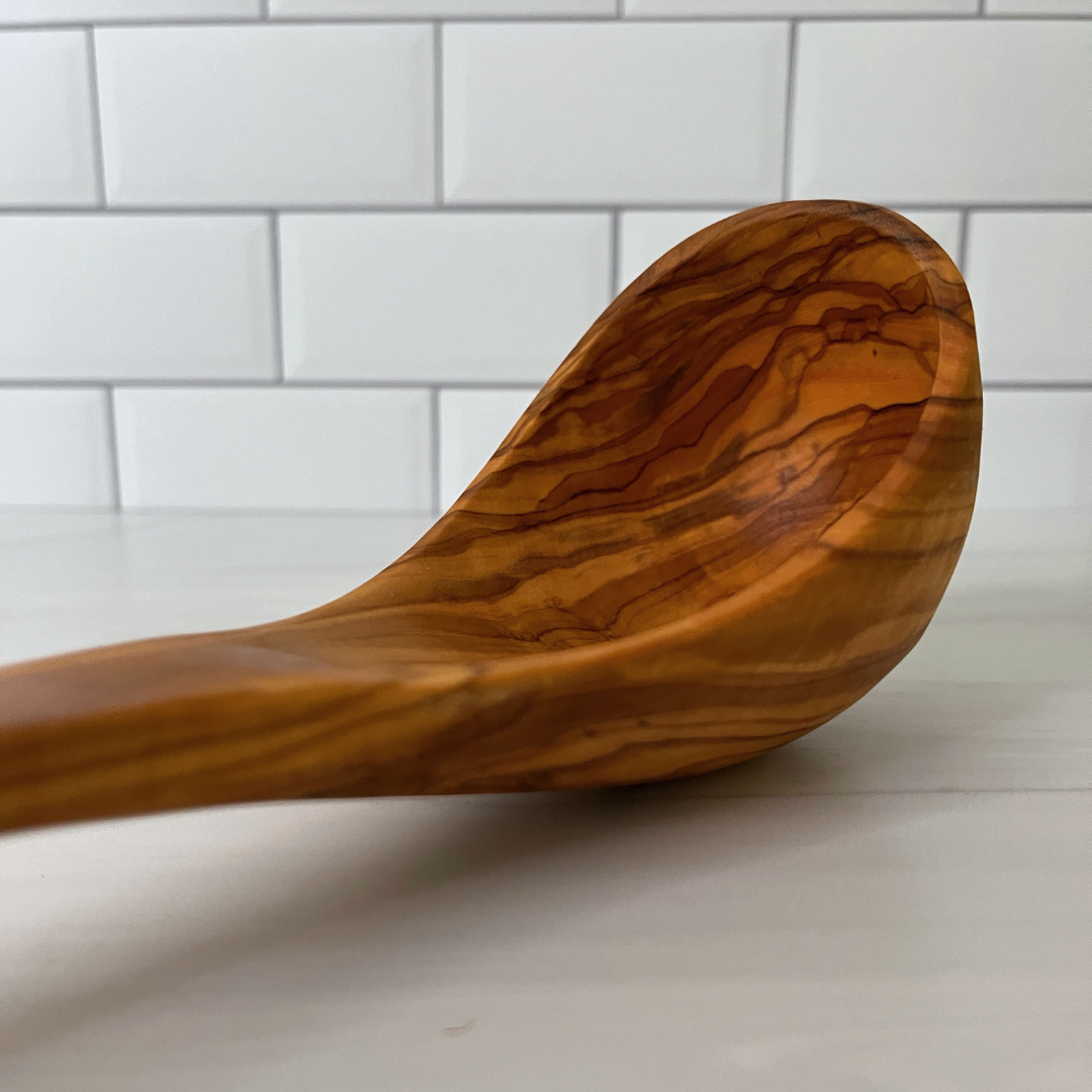 Experience the beauty and functionality of our Olive Wood Ladle – handcrafted from a single piece of olive wood.
