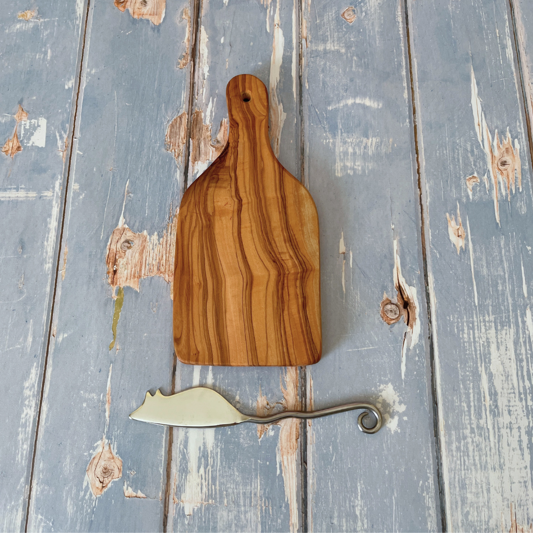 Olive Wood Mini Paddle Board with Mouse Cheese Spreader