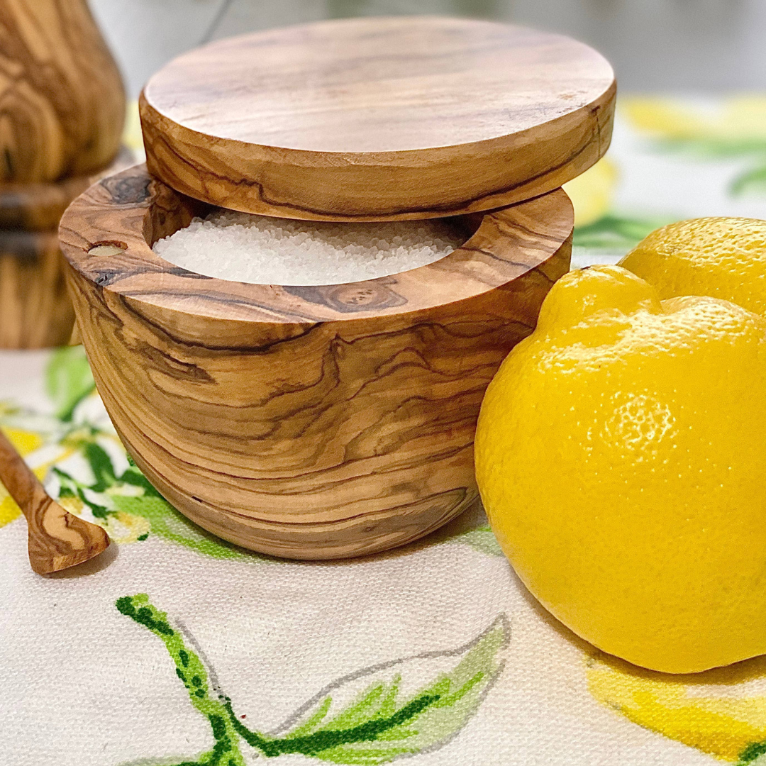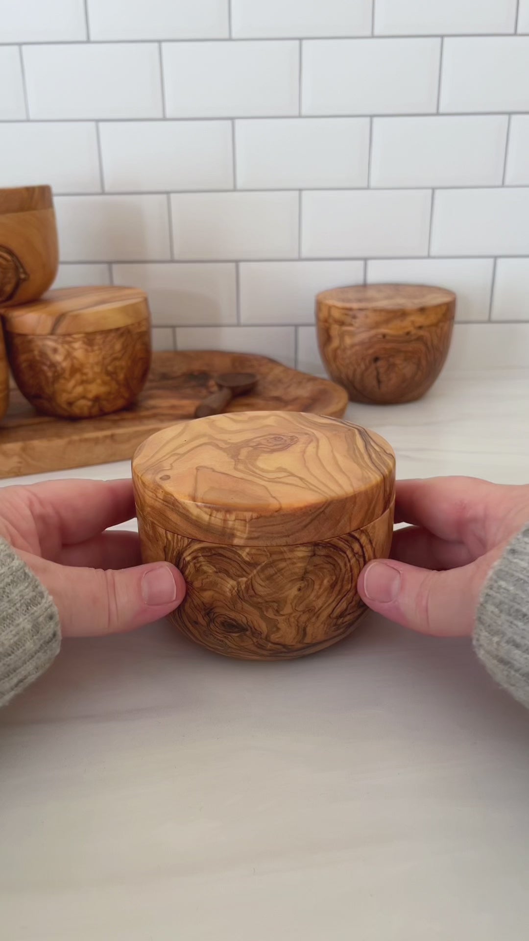Versatile for storing salt, herbs, and spices, olive wood is known for its density and durability, perfect for everyday use.