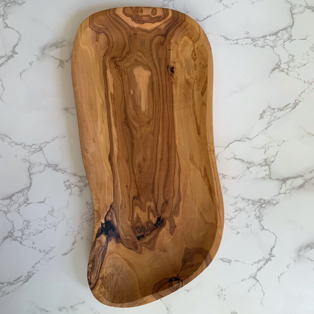 We found your new "go-to" everyday serving tray! Our Medium Olive Wood Serving Tray features a slight edge to keep your food where it needs to be. The size of this tray (13"-14") makes it perfect for all your small or large needs.