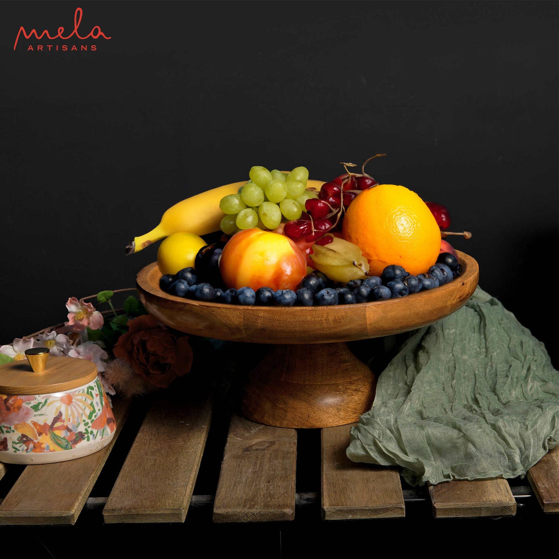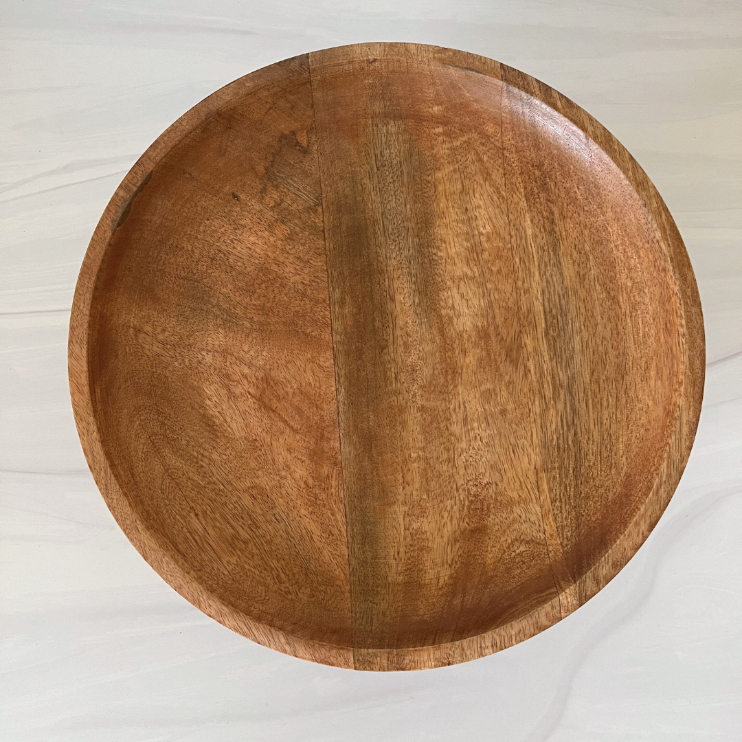Handcrafted by skilled artisans in India, this simple minimalist serving stand, made from Mango wood, adds a touch of warmth and elegance to your space.