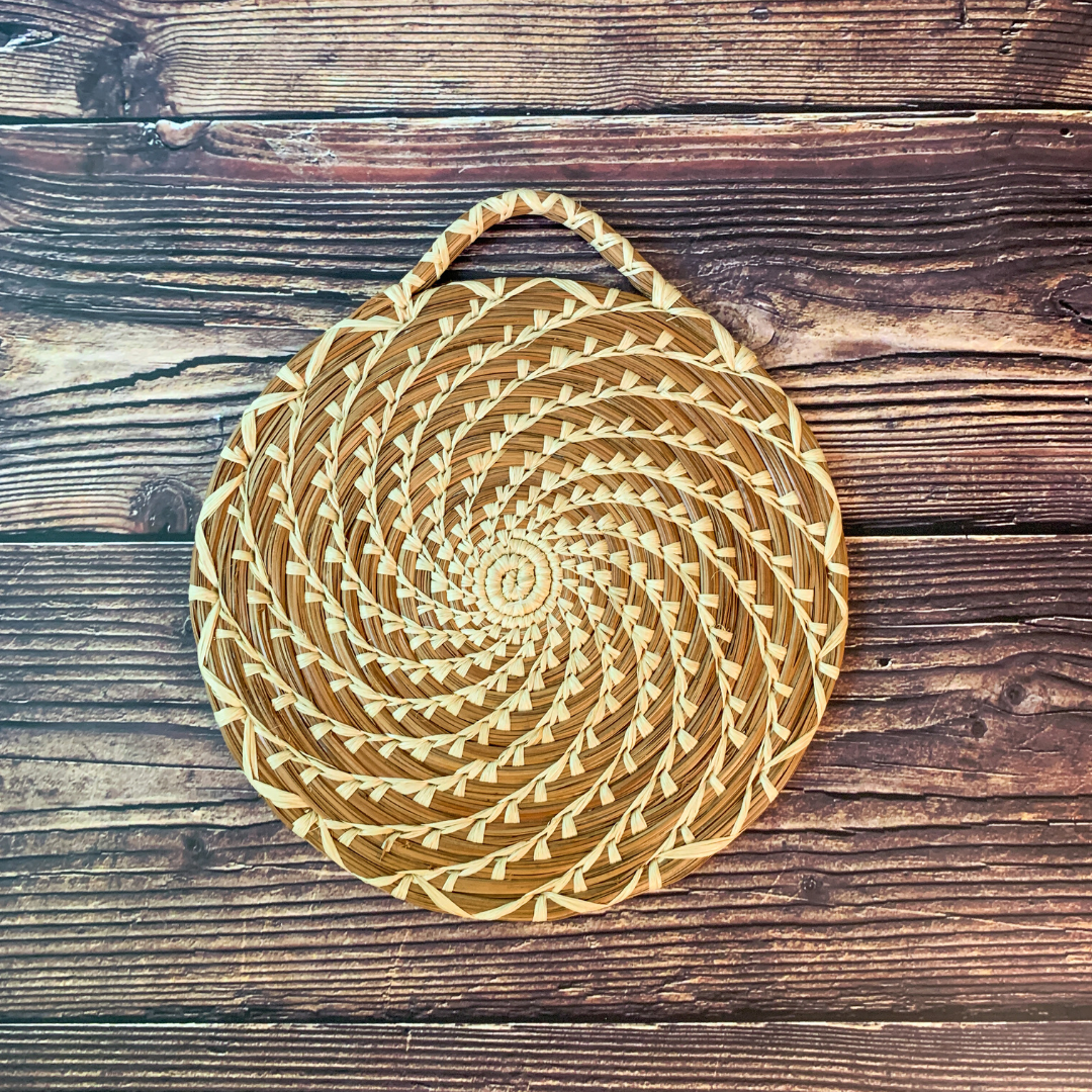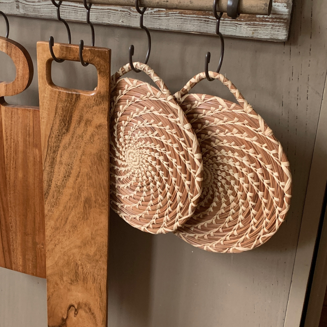 A necessity for any kitchen, this hand woven pine needle trivet is heat resistant and works to protect your table from hot dishes.