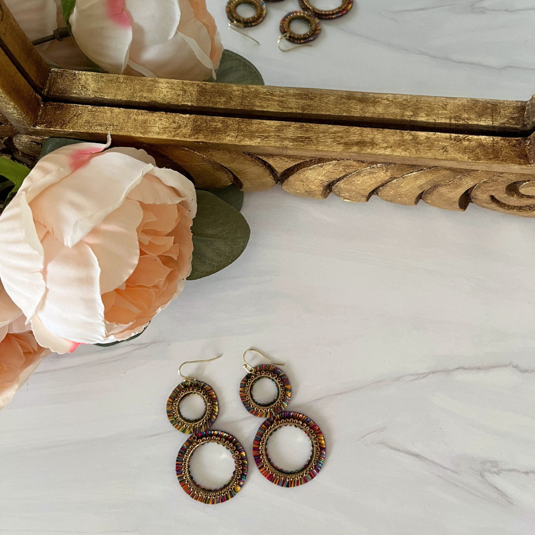 Experience the vibrancy of the Raja Rainbow Double Hoops!