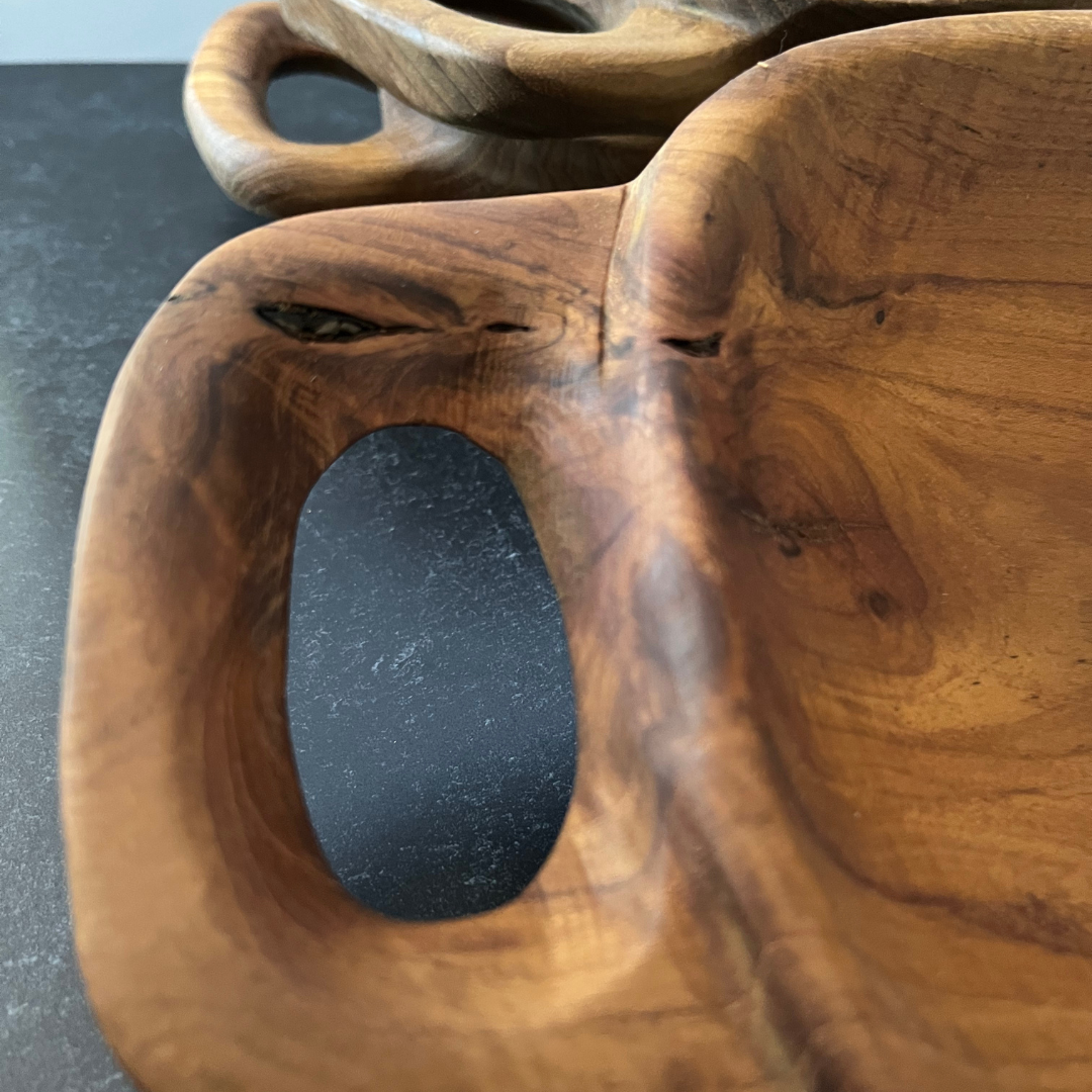Made from Salvaged Teak roots, these trays are beautiful, durable, and ecologically responsible. Coated with a food safe blend of organic beeswax and mineral oil.
