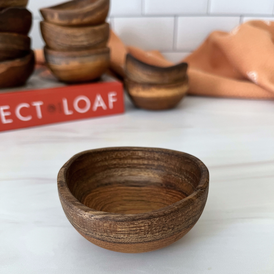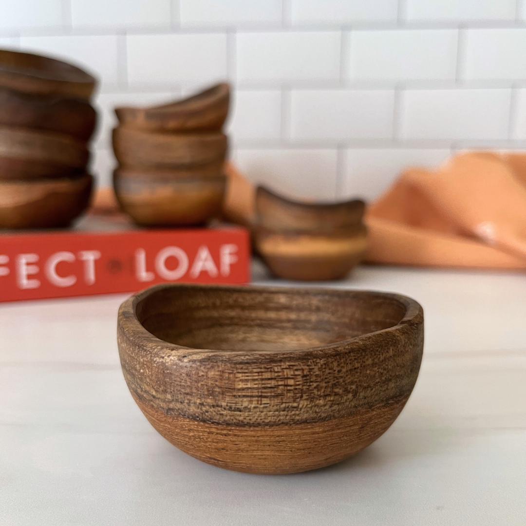 Enjoy the rustic beauty of these Mise en Place hand-carved teak wood prep bowls!