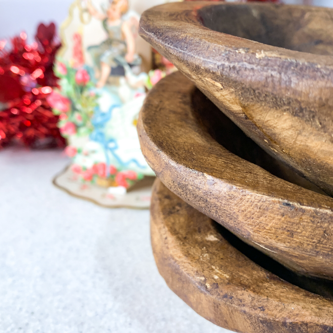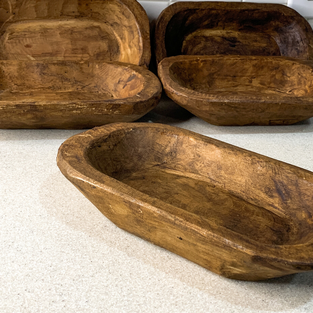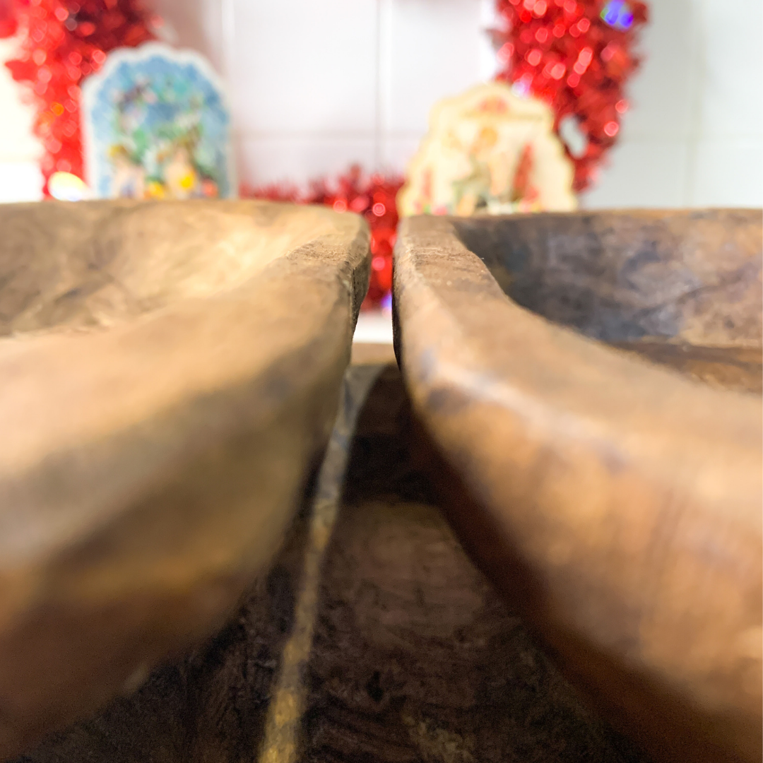 Add a touch of rustic warmth and charm with these hand carved wooden dough bowls. Use as a catch-all for keys and change or fill it up with yummy wrapped candy for family and guests.