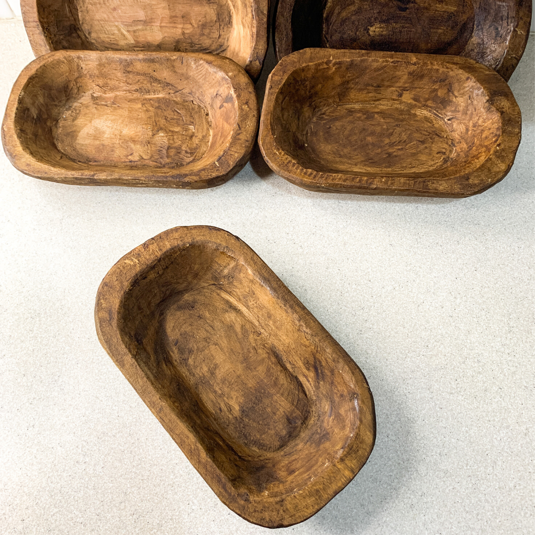 Each bowl is unique and the size, shape and color of each will vary slightly due to being hand carved. Each bowl showcases scrapes, dents and imperfections which we think is great as it brings out the rustic charm.
