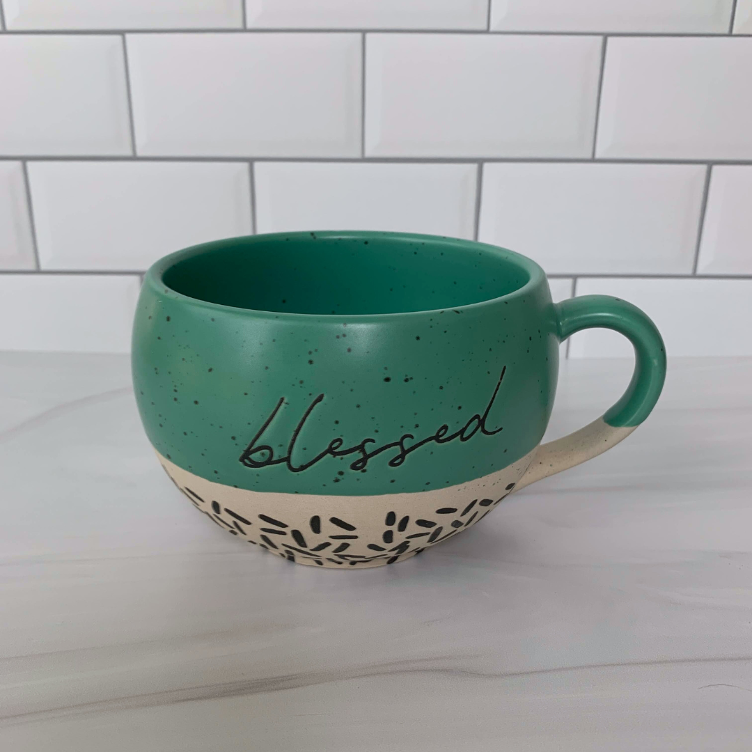 Start your morning off on the right foot with our "Blessed" Stoneware Mug!