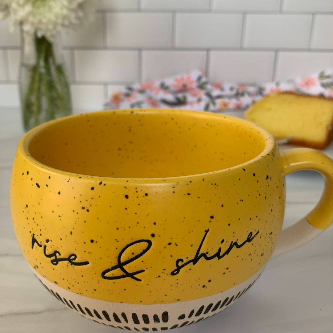 Start your day off right with our "Rise & Shine" Stoneware Mug!