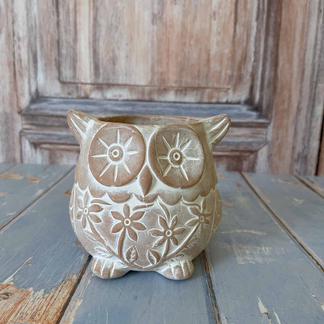 This incredibly cute and charming fair trade owl-shaped terracotta pot is whitewashed to highlight incredible handmade detail. Includes a drainage hole for the best environment for your plants.